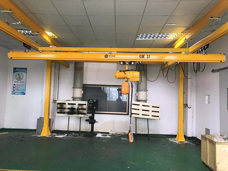 單主梁門式起重機結(jié)構(gòu)簡單,制造安裝方便,自身質(zhì)量小,主梁多為偏軌箱形架結(jié)構(gòu)。與雙主梁門式起重機相比,整體剛度要弱一些。因此,當(dāng)起重量Q≤50t、跨度S≤35m時,可采用這種形式。單主梁門式起重機門腿有L型和C型兩種形式。L型的制造安裝方便,受力情況好,自身質(zhì)量較小,但是,吊運貨物通過支腿處的空間相對小一些。C型的支腳做成傾斜或彎曲形,目的在于有較大的橫向空間,以使貨物順利通過支腳。